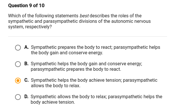 Which Best Describes the Function of the Parasympathetic Nervous System